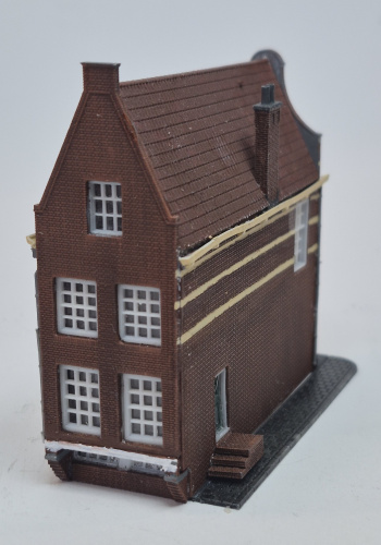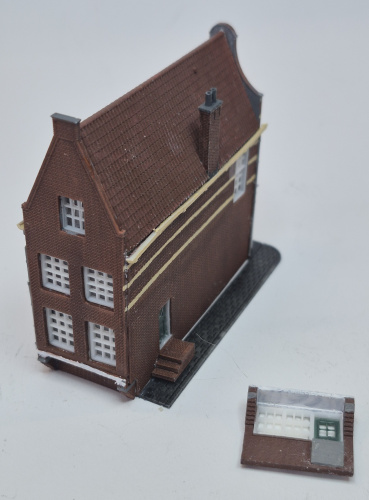 Het model is niet gegoten maar geheel geprint in resin. Daardoor altijd een hoge kwaliteit en optimale details. Er is de keuze uit 2 achtergevels zodat het pand geheel gelijkvloers of aan de gracht kan worden gebouwd, zoals bij het origineel.