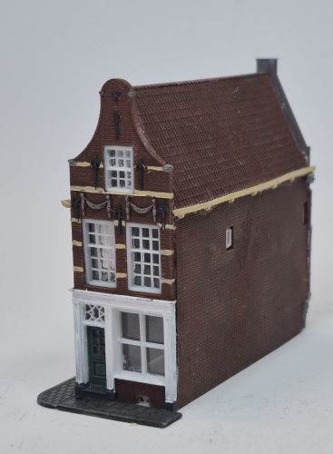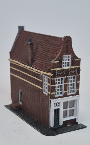 Het model is niet gegoten maar geheel geprint in resin. Daardoor altijd een hoge kwaliteit en optimale details. Er is de keuze uit 2 achtergevels zodat het pand geheel gelijkvloers of aan de gracht kan worden gebouwd, zoals bij het origineel.